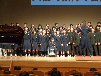 11月9日(日)に十勝子ども大会 音楽・舞踊の部に出場してきました。全校生徒で「夏の日の贈りもの」と「あなたへー旅立ちに寄せるメッセージ」を合唱しました。トップバッターでしたが、とても良い表情で歌っていて素晴らしい合唱でした。他の学校の合唱も聴くことができ、とても貴重な経験になりました。