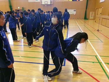 6時間目に避難訓練が実施されました。今回は、不審者が学校内に侵入したときを想定した避難訓練でした。放送の指示に従って、スムーズに避難できました。避難後は、広尾警察署の方から護身術を教わり、実際にペアを組んでやってみました。不審者に遭わないことが一番ですが、もしもの時に自分の身を守れるように、これからも避難訓練を積み重ねていきたいです・