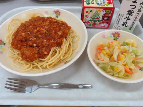 ・コールスローサラダ ・クリスマスケーキ ・牛乳
